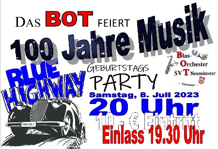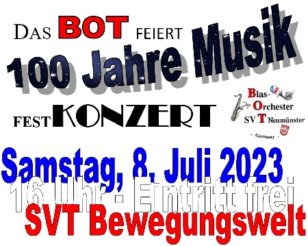 Samstag, 8.Juli 2023, um 16 Uhr mit dem BOT, dem Ehemaligenorchesterprojekt des BOT, dem Mädchen Musikzug Neumünster und dem Blasorchester TSV Wankendorf.